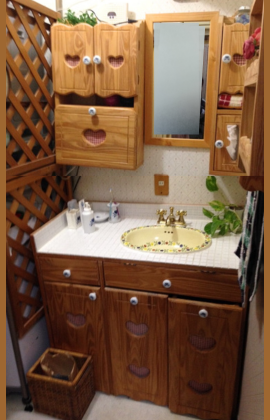 その家で、洗面所をカントリー調にDIYしたことがあります。(上の写真)